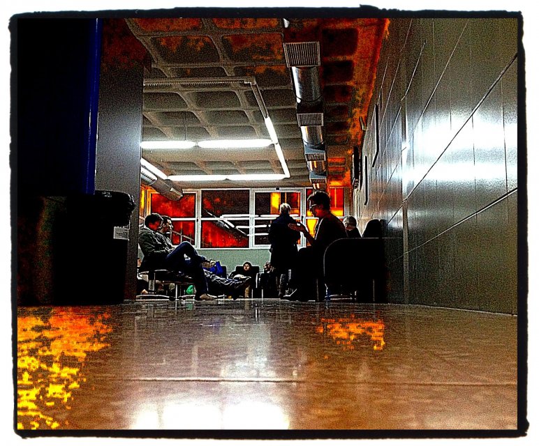 A la sala d’espera cada vegada hi ha més coses en el lloc on has establert el teu campament. L’objecte nou ara és un gotet de plàstic que ha contingut el cafè de màquina que t’acabes de beure. No hi ha wi-fi públic i hauràs de tirar del paquet de dades que has contractat amb el telèfons. Per no abusar intentes concentrar-te en la lectura. Petros Màrkaris, a qui adores, fa treballar l’inspector Kharitos per la Grècia arruïnada i intervinguda. Transitar per la novel·la és com llegir un telenotícies. De tant en tant, pels altaveus sonen noms que mai no són el que tu esperes escoltar. Les dones que tens al costat comenten que ja porten dotze hores d’espera a la sala. Elles també s’han fet seu el lloc que ocupen. També han acumulat tot d’andròmines al seu voltat. Ningú no gosarà okupar les seues cadires quan elles s’alcen per anar al servei o per anar a demanar informació sobre el seu parent. Quan has arribat a l’hospital el cel era blau, després s’ha fet roig i ara, quan ja fa set o vuit hores que esperes, tot és negre. Dins i fora de la sala d’espera. Algunes persones abandonen definitivament el campament. N’arriben d’altres. Et prens un altre cafè, aquest tocat amb xocolata. Dolent, és clar. La teua cadira continua ocupada pel teu cos, la del costat, per tots els artefactes. Fulleges compulsivament el twitter i el correu electrònic. Fas una partideta al solitari i una altra a l’Angry Birds. S’acaba la bateria del mòbil i cerques desesperadament un endoll. No en veus cap. Et sents perduda.