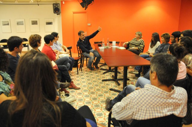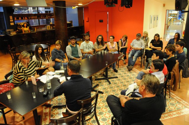I també vam parlar de la crisi. És clar. Crec que tots els que érem aquell dia allà estem afectats d'una o altra manera per aquesta xacra que ens marca el dia a dia. La pròpia situació de l'Espai Mallorca és molt precària. Els treballadors han deixat de cobrar fa mesos, i no obstant això ens van rebre amb els braços oberts i mantenen la dignitat i la professionalitat per damunt de tot. L'Espai és un lloc acollidor, just darrere les Rambles, al cor del Raval. Un lloc on es poden trobar llibres, discos i productes de les Illes Balears. S'hi fan exposicions i presentacions literàries, s'hi pot dinar i s'hi pot prendre una copa, com la pomada granisada que ens van servir durant la conversa... És en sí mateix una Illa emmig de la ciutat. Una illa, no obstant, que, si no fem res, desapareixerà engolida pel tsunami de la crisi.