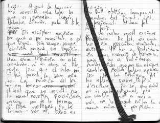 És un premi molt especial, que em va fer un munt d'il·lusió perquè la composició del jurat és extraordinària. Cent persones, cent lectors, relacionats amb la llibreria L'Odissea de Vilafranca del Penedés llegeixen els originals presentats i van fent eliminiatòries fins a deixar quatre o cinc finalistes que passen a un jurat, diguem-ne, professional. Ja ho vaig dir el dia del lliurament, encara que l'emoció em va impedir articular un discurs coherent. La foto és de l'intent que vaig fer d'escriure unes notes al meu quadern. A l'auditori de Vilafranca, quan va ser l'hora de la veritat, no vaig poder llegir res, perquè un focus m'enlluernava. En tot cas, no em cans de repetir que el que fan a l'Odissea em sembla una manera meravellosa de festejar la literatura.