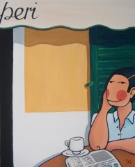 N'Iván Triay és un pintor i dissenyador de Ciutadella. La seua obra m'encanta des que li vaig comprar uns quants quadres de petit format que ell mateix venia en un mercadet que feien tots els dijous d'estiu a Ciutadella. Ja fa molts d'anys. Un d'aquests quadres el tenc penjat a la paret de l'estudi i quan escrivia Enllà de la mar vaig veure clar que aquella dona era na Clara Llabés. Uns anys més tard, n'Iván em va demanar que li fes un text per a una exposició que havia de fer a Ciutadella. Uns quadres enormes, acolorits i preciosos. Em vaig posar contentíssima, i només em va sebre greu no poder veure l'exposició sencera. Això és el que vaig escriure. ivan-triay.pdf