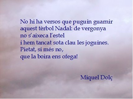 Aquesta és la nadala que em va enviar des de Palma la meua amiga Antònia Vicens. M'agraden aquests versos de Miquel Dolç. Escarrinxen.