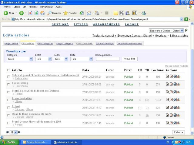 Aquest post és d’auto propaganda i d’agraïment. El faré curtet, només per deixar constància que un post d’aquest bloc, concretament aquest sobrepassa les mil lectures. Tal vegada és una misèria. Ja sé que hi ha blocs que tenen mil lectures diàries, i el meu ha tardat quatre mesos. Ja sé que és lògic que molta gent hi vagi a parar perquè és el post de El cos deshabitat i està molt retroenllaçat. Però què voleu que us digui... en fa gràcia. Així és que gràcies, i esper que ens continuem trobant per aquí.