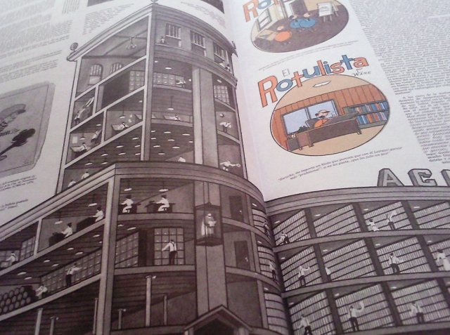 El més curiós d’això és que feia dos dies que tenia el llibre a casa quan el suplement literari de El País va dedicar uns quants fulls al Saló del Còmic de Barcelona, i entre les obres que destacava hi havia aquest Catàleg. Us deix l’enllaç perquè llegiu tot el que diu d’aquest àlbum. Entre els aficionats a les històries il·lustrades hi ha molts bloguers, i aquí també en deix uns quants. Estic encantada amb el meu “Catálogo de novedades Acme” i cada dia faig un esforç per llegir-ne un trosset. També m’agrada tocar-lo, sospesar-lo, observar els diversos tipus de lletra, els trompe l’oeil, buscar les bromes, i llegir la falsa publicitat. Una meravella.