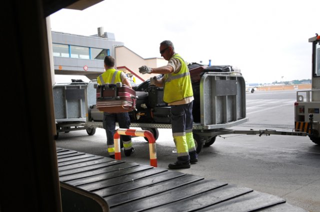 Això que hi ha a la foto que encapçala aquest article és una maleta que vola. Un operari la fa volar de dalt baix per posar-la del carro a la cinta que l'ha de tornar al viatger. Aquesta foto la vam fer des de l'avió mentre esperàvem que s'obrissin les portes d'un vol d'Air Berlin entre Palma i València el mes de setembre passat. No sé com va quedar el contingut d'aquesta maleta. Nosaltres vam fer la foto perquè en un viatge anterior ens en van tornar una absolutament capolada. Era de les dures, de les bones, de les cares, i quan la vam recollir feia pena. Vam protestar i ens en van donar una de nova. Similar perquè a la botiga que ens van remetre no la tenien de la mateixa marca.