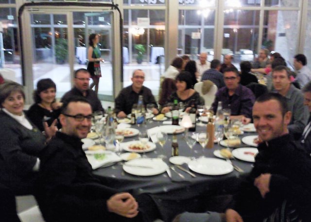 Aquesta sorpresa ha fet que la nit hagi estat rodona. A banda d’en Joan, hem compartit taula, conversa i confidències amb col·legues com Vicent Borràs, Manuel Baixauli, Urbà Lozano, Xavi Sarrià i M. Carme Roca, guanyadora del premi de Literatura Juvenil. A la foto no sortim gaire afavorits, però ens l’ha feta en Jesús amb el meu mòbil, un estil informal que diu més amb el look d’aquest blog.