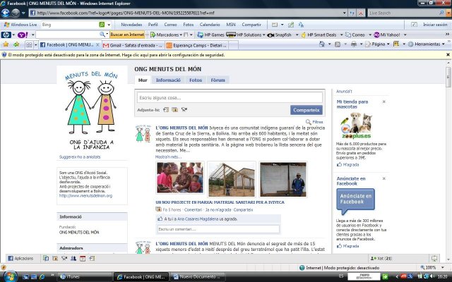 A pesar de tot l’anterior Facebook m’agrada. Des del mes de maig, a través de Facebook he donat a conèixer alguna activitat en què he participat, m’ha servit per enllaçar-hi aquest blog i fer-lo arribar a més gent. Rall més sovint amb els meus cosins que viuen a Ciutadella, Palma o Barcelona. Fins i tot, per Nadal, li vaig regalar un perfil seu a la meua mare. He “conegut” de manera física i no virtual persones que només eren fotografies al perfil, i a més, he fet contactes interessants. Sóc "amiga" de totes editorials que se'm posen a tir, mai no se sap... Som fan d’algunes pàgines com les que surten a les fotos de Balearweb, que ens dóna pistes boníssimes sobre les illes, on hi ha vídeos encantadors i fotos de paratges meravellosos, a més d’informació bàsica per als visitants. També som fan de la pàgina de Menuts del Món, una ONG valenciana, modesta, que treballa fermament a Bolívia fent projectes que es poden tocar amb les mans... Per totes aquestes coses, m’agrada Facebook.