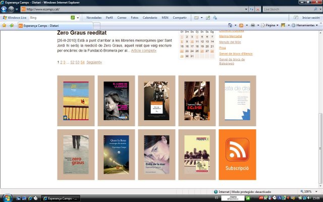 Tal vegada els seguidors d'aquesta casa feta de lletres haureu notat algun canvi d'aspecte. És un canvi lleu, just a la part de baix de la pàgina, on fins ara hi havia les portades de les quatre novel·les que he publicat, que eren botons que enllaçaven al contingut i a articles relacionats. A partir d'aquest cap de setmana, a més també hi ha les obres breus i les obres col·lectives en què he participat. La darrera incorporació, ja en parlava aquí, és la reedició de Zero Graus. També són botons, si clicau, trobareu informació.