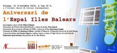 Tal com es pot llegir a la tarja que encapçala aquest post (clicau damunt per fer-la més gran) dijous que ve, dia 21 d'octubre, l'Espai Illes Balears compleix un any, i ho volen celebrar a l'Octubre, que és la seu permanent d'aquest forat de les Illes a València. Vindran el Conseller de Cultura i altres autoritats del Govern. Aquesta vegada hi haurà una representació de Menorca. Concretament, de l'Institut Menorquí d'estudis, un organisme que fa una feina tranquil·la, pausada i soterrada a Menorca des de fa anys. Una institució que, a banda d'editar llibres, promou tot tipus d'estudis a través de les seues seccions, i fa possible el que feien els antics enciclopedistes: deixar fixat tot el coneixement que es fa a Menorca, des de Menorca i cap a Menorca. D'això en parlarà na Fina Salord, que durant molts anys n'ha estat la presidenta del Consell Científic. Na Fina ha estat l'artífex de l'edició menorquina de "Zero Graus" i m'ha convidat a parlar-ne en aquest acte.